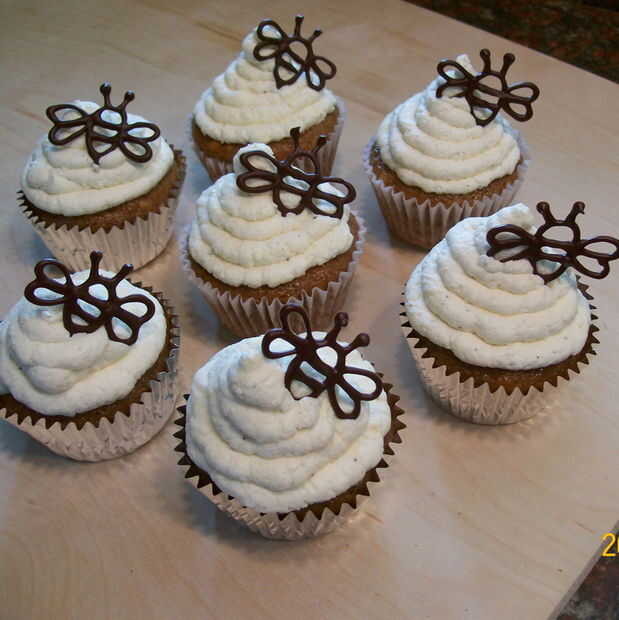 Me encanta hacer estos cupcakes. No sólo son divertidas porque llegar a pipa pequeñas abejas chocolate pero son realmente sanos. Con todos los ingredientes orgánicos y sin azúcar refinado es una buena excusa para comer magdalenas para el desayuno! Nadie será objeto - lo prometo!