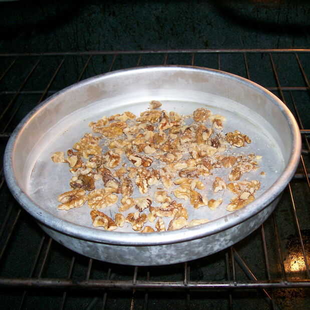 Precalentar el horno a 350 grados nueces tostadas F. 5-7 minutos o hasta que puede empezar a oler el relleno de delicioso aroma de su cocina.