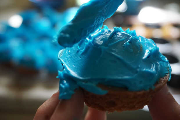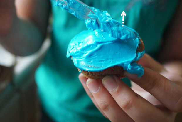 Ahora es el momento para hacer algunas olas. Tomar el cuchillo y colocar encima de tu cupcake como si se va a cortar por la mitad. Ahora, en lugar de mover el cuchillo hacia abajo, dibuja hacia arriba. Esto debe crear una onda como la línea. Ahora, repita el proceso otra vez. Y otra vez. Y otra vez - hasta que su Magdalena es tan ondulada como te gustaría que fuera.