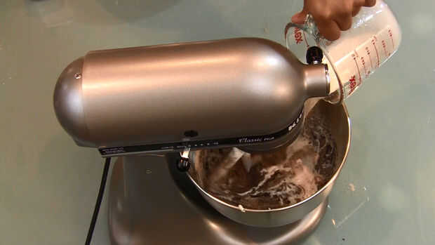 Ahora, con la batidora a baja velocidad, alternan agregar los ingredientes secos y mojados los ingredientes, terminando con la seca.