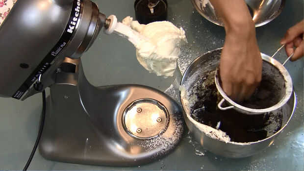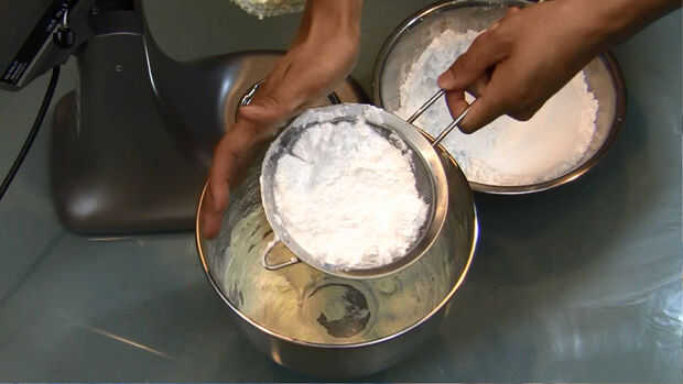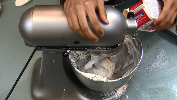 Sus 3 barras de mantequilla y batir a una velocidad media baja hasta liso y cremoso. Luego tamizar el azúcar en polvo en dos rondas (tamizar por la mitad y mezclar a velocidad baja, luego tamizar en la segunda mitad y continúe batiendo a baja velocidad). Tomar el proceso y Oreo triturada en polvo del mismo modo como hicimos anteriormente para la mezcla de pastel. Cuando su Oreo es agradable y polvoriento, tamice en la crema y mezclar a velocidad baja hasta. Si es necesario, puede Agregar hasta 3 cucharadas de consistencia crema a fina a la crema pesada.