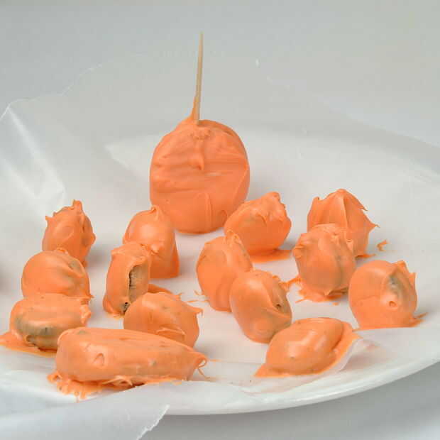 Mi idea inicial para mojar las galletas Oreo, era pegar palillos de dientes en la crema y luego encestarles como eso por lo que fácilmente podría quitar el palillo de dientes después de que fueron ahogados. Esto no funciona. Porque se derrite el caramelo son tan densas, causan el palillo actuar como una palanca y en vez de mojar en y tomando todo muy bien, lo pries aparte su Oreo y causa un desastre.