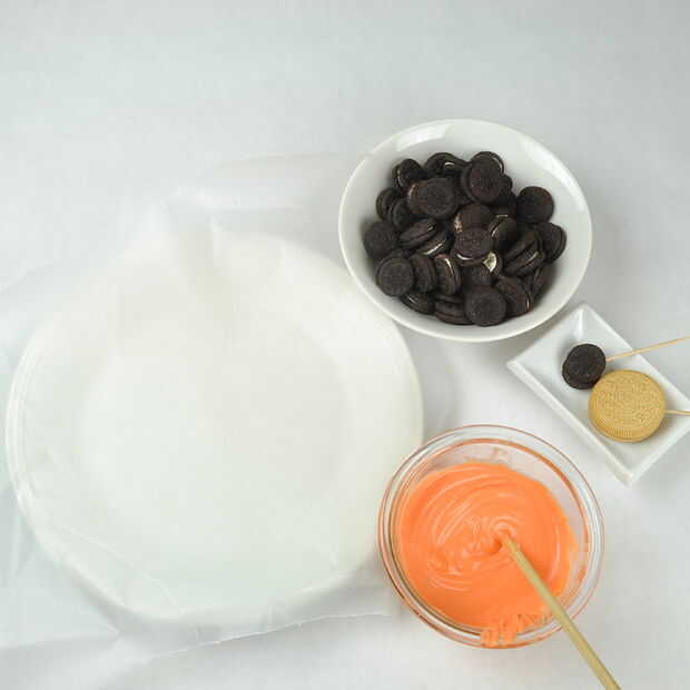 Para tener listo para mojar tus Oreos, conseguir un pedazo de papel de cera hacia fuera. Usted necesitará un pedazo bastante grande si haces tantos como lo hice. Entonces, en un recipiente, derrite cuidadosamente sus candy melts. Se reúnen que tus Oreos y usted está listo para ir!