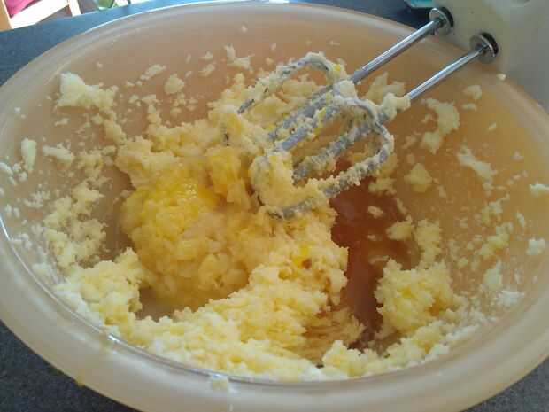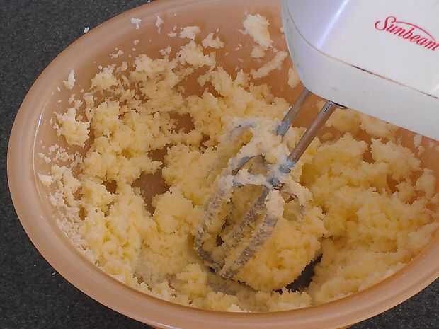 1) batir la mantequilla y el azúcar hasta mezclado y esponjoso.