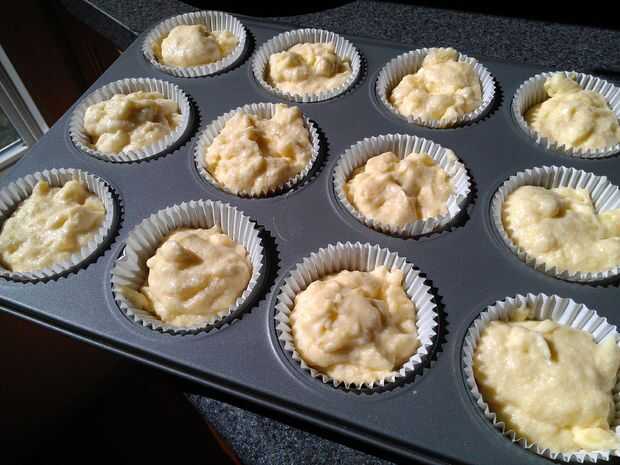 6) dividir la masa de la Magdalena en la bandeja de la Magdalena. Hornear durante 25 minutos (o hasta que un palillo salga limpio). Retirar del horno deja enfriar. Desmoldar los bizcochos y dejarlos continuar se enfríe por completo.