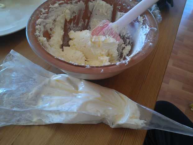 Para hacer lo que han acuñado el patrón "Swirly estrella", comience en el borde exterior de la Magdalena y apretar lentamente, haciendo un remolino grande hasta llegar al centro de la cupcake. Apriete mientras presiona hacia abajo firmemente en el centro de la cupcake y luego levante lentamente la punta de tubería de la Magdalena. Podría tomar un poco de práctica pero siempre puede raspar el cupcake en la Manga pastelera y vuelva a intentarlo! Pido disculpas por haber hay fotos del proceso de tubería pero necesitaba ambas manos para la tubería.