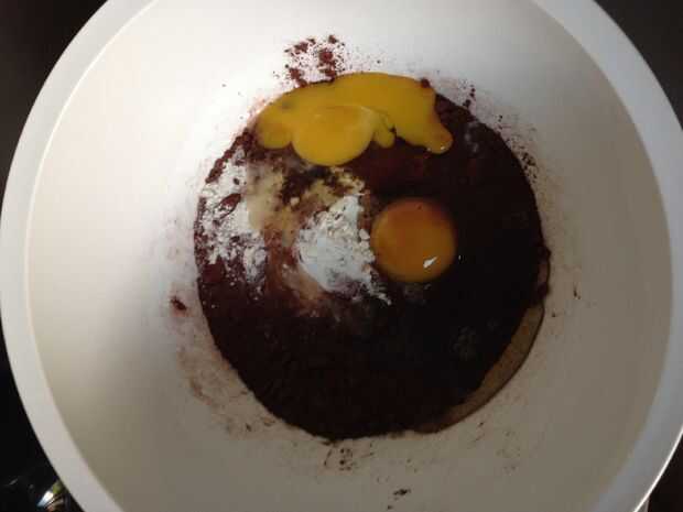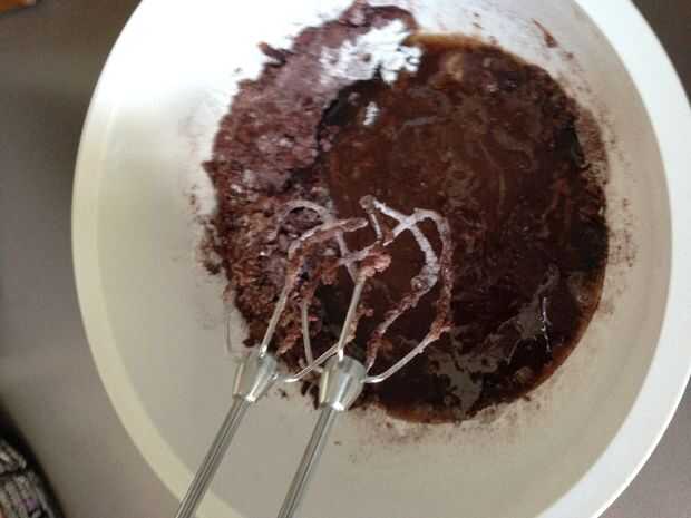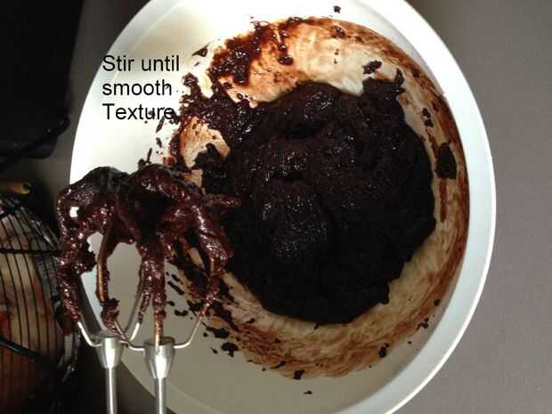 • Añadir la mantequilla fundida y el chocolate a la mezcla y revuelva hasta que quede una textura lisa alcanzaron (cuadro 4)