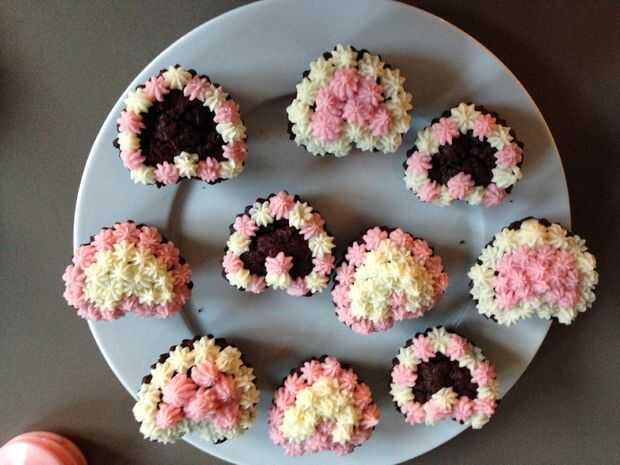 Esta decoración se compone de los mismos puntos pero deja el centro de la cupcake sin rematar (si no te gusta muy dulce). Cambio de color, coloque un punto tras otro en el borde exterior de la Magdalena.