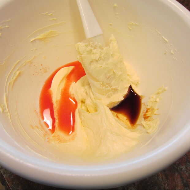 Añadir colorante si no tienes el color que te gusta. He añadido rojo y cobre para obtener el color final.