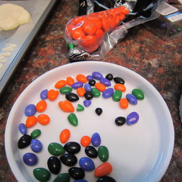 Añadir trocitos de caramelos de colores para que se vea como guisantes y zanahorias en la sopa. Utilicé chocolate cubiertas semillas de girasol pero corte m & m ' s funcionaría muy bien también.