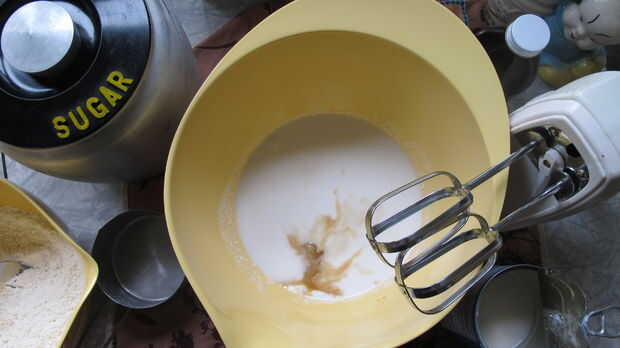 4. en otro tazón mediano Mezcle 1 taza de leche de coco, 3/4 taza de azúcar, 1 cucharadita de vainilla y 2 cucharaditas Extracto de coco. (Yo uso una batidora de mano) Agregue el aceite de coco derretido. Añadir la mezcla de harina media taza a la vez, batiendo cada vez. Mezcla hasta que esté suave, luego doblar en el coco 1/2 taza rallado.