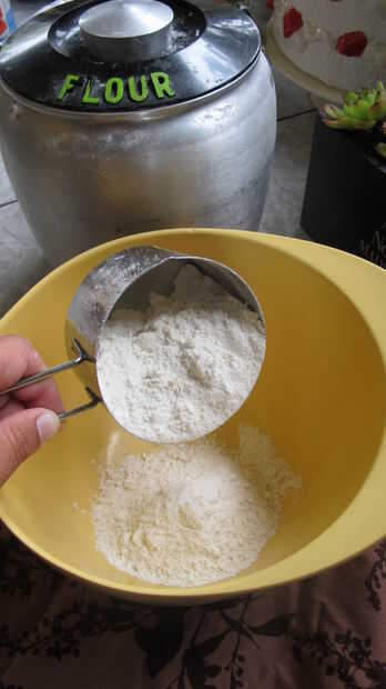 2. en un tazón pequeño, mezcle 1 taza de harina, 1 1/2 cucharadita de polvo de hornear y 1/4 cucharadita de sal