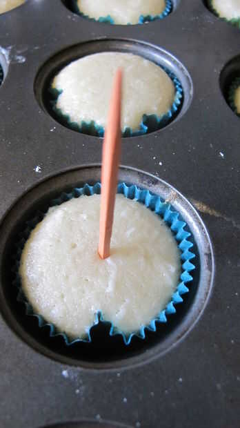 1 precalentar el horno a 350F y línea de su bandeja de mini-cupcake con forros verdes (si no tienes, ENMANTECAR el molde y forro gratis, más adelante puede añadir papel o simplemente helada lados y hacerlas rodar en el coco demasiado) también grasa tu molde de mini pan, usar manteca y harina para hacerlo.