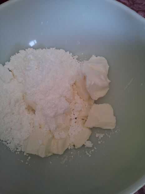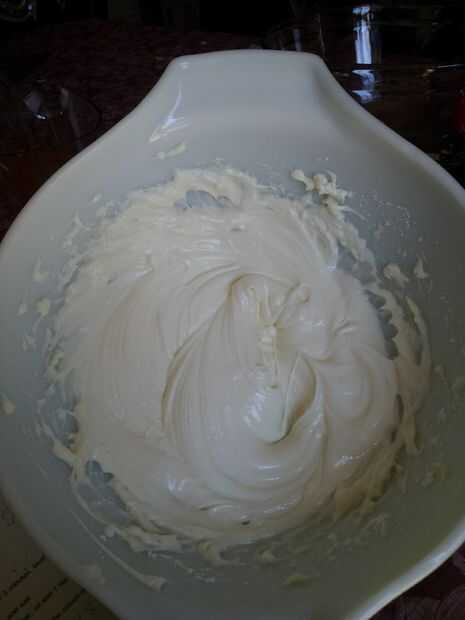 Usando una batidora eléctrica, batir queso crema con el azúcar durante 3 minutos. Batir clara de huevo y 1/2 cucharadita de vainilla, mezclar bien. Esto es para el llenado de la Magdalena pero si decides hacer un glaseado de queso crema. Tomé una foto de mi receta de mejores viviendas y libro de cocina de jardines.