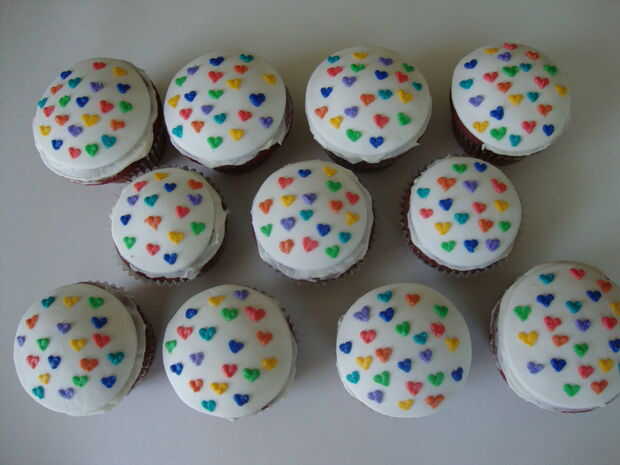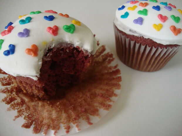 cupcakes de terciopelo rojoHace que: 12Preparación: 30 minutos + enfriamientoCocción: 25 minutosIngredientes:125g (4oz) de mantequilla, ablandada125g (4oz) de azúcar impalpable2 huevos125g (4oz) autoelevables harina1 cucharadita de extracto de vainil