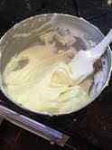 Lentamente añadir tres y media tazas de azúcar en polvo un poco hasta que todo ha sido añadido y combinado.