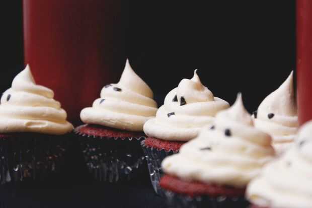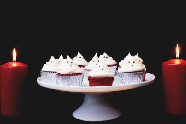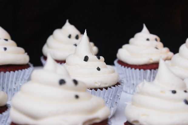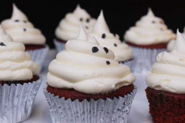 Cupcakes de terciopelo rojo Halloween fantasma (3 / 3 paso)