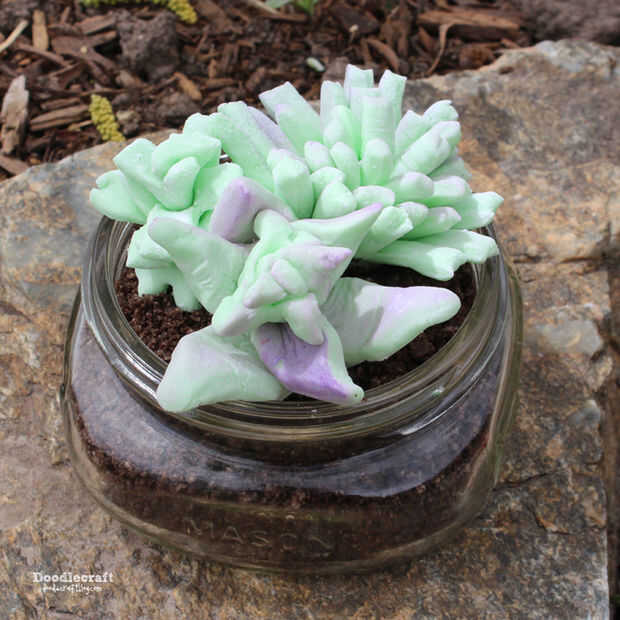 Usar una cuchara pequeña para sacar un pequeño agujero en el glaseado y añadir su planta!