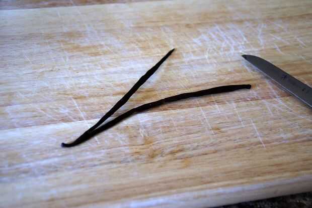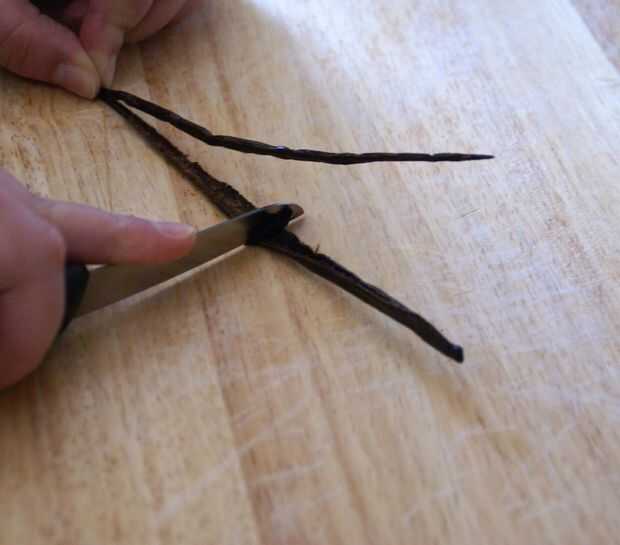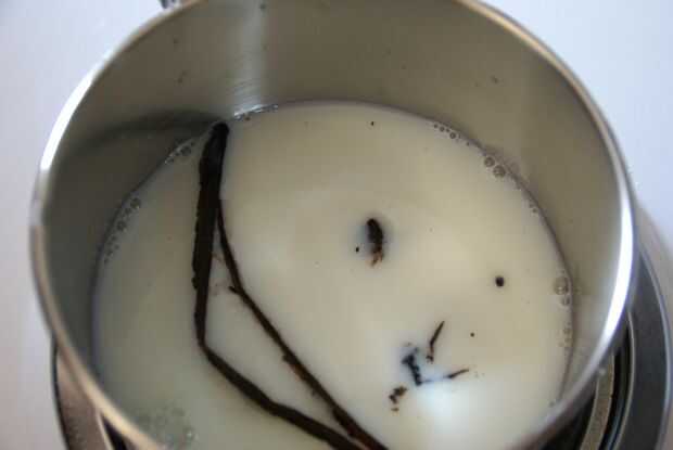 1. Tome su vainilla estado y cortar longitud sabio el centro. Con su cuchillo de ambos lados de las semillas de la vaina del desecho y poner en una cacerola pequeña junto con la vaina. Agregar las 6 cucharadas de leche a la olla.