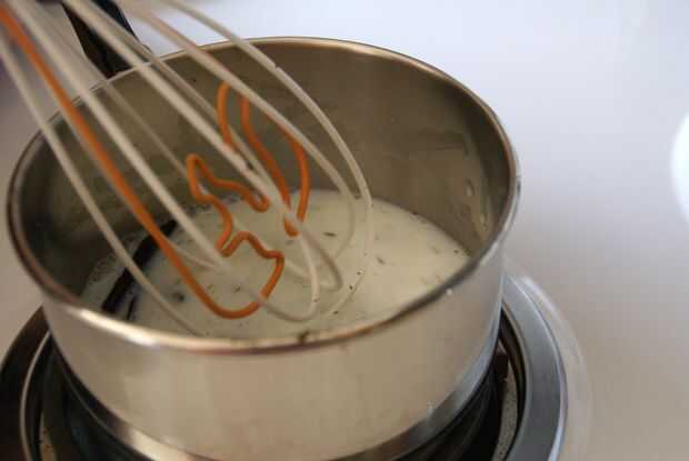 2. Caliéntalo a fuego medio alto y bate sólo hasta que aparezcan burbujas alrededor del borde de la cacerola.
