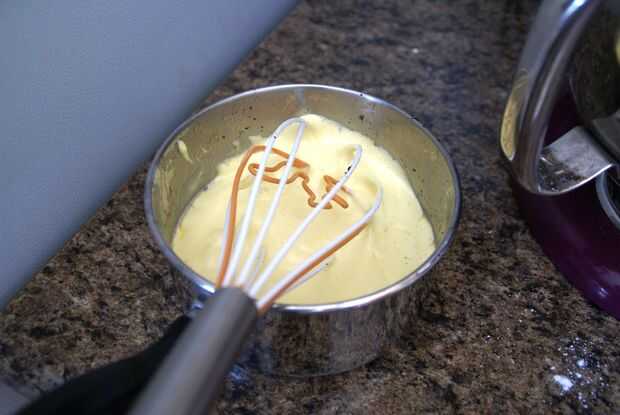 3. Revuelva la mezcla de la leche se espese lo y luego doblar la mezcla de leche a la masa hasta que esté uniformemente incorporado con 3/4 de taza de la mezcla.