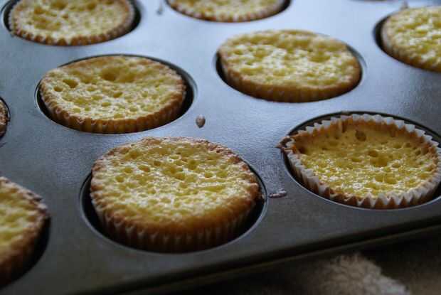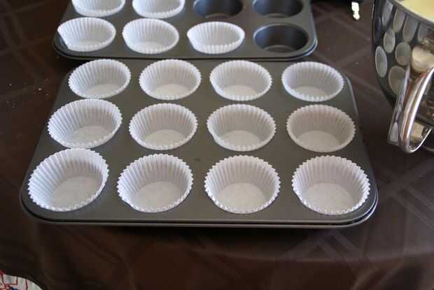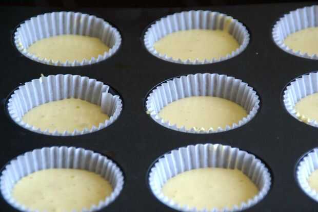 4. Precalentar el horno a 325 grados y comenzar a tus moldes de Magdalena con forros de papel. Dividir la masa entre los trazadores de líneas preparados, llenándolos aproximadamente tres cuartas partes lleno y poner en el horno para hornear durante 20 minutos, girando las cacerolas de la mitad de camino, hasta que son luz en color oro. Transferir los moldes a rejillas de alambre o sobre una toalla y dejar que enfríen antes de quitarlas.