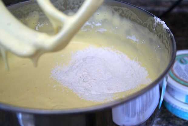 1. En un tazón mediano combine la harina de la torta, polvo de hornear, sal y se mezclan.