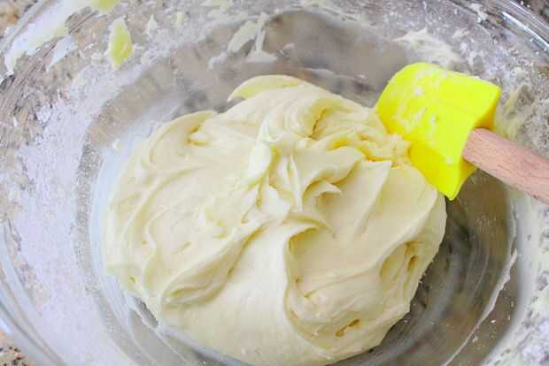 9. mientras se están enfriando cupcakes y compota de arándanos, preparar el glaseado. En un tazón mediano, batir la mantequilla y queso crema. pastelería azúcar y extracto de vainilla y batir hasta combinar bien. Esto debe tomar unos minutos.
