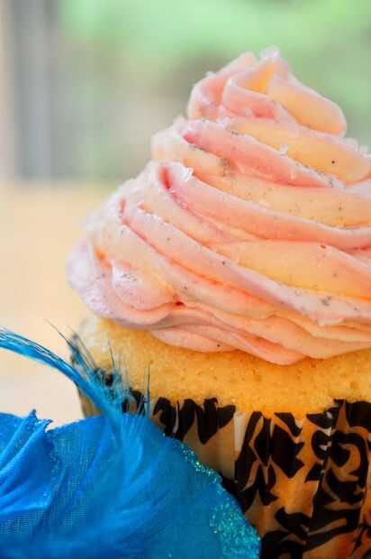 En un mezclador, preparar las semillas de la mantequilla y la vainilla hasta ligero y mullido. Batir poco a poco el azúcar.