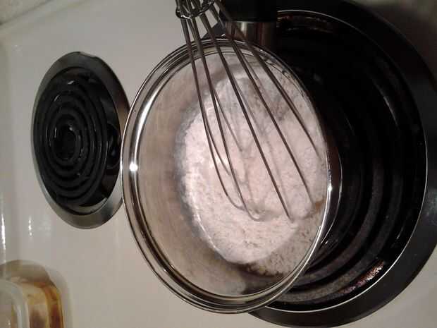 Combinan la leche y la harina en una cacerola pequeña y bate a fuego bajo hasta que espese. Asegúrese y continuar a batir mientras se espese.