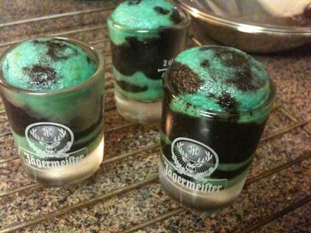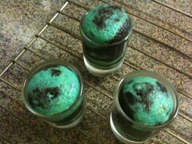 Sólo Coloque sus vasos de chupito lleno hasta la mitad en una bandeja metálica y puso en el horno. Dependiendo de su horno, deben tomar 10-12 minutos. Utilice un palillo de dientes para meter dentro y asegúrese de que se desliza hacia fuera limpia! Sáquelos del horno y poner sobre una rejilla para enfriar.