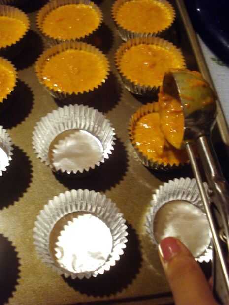Usé una cuchara de helado para poner la mezcla en las tazas.