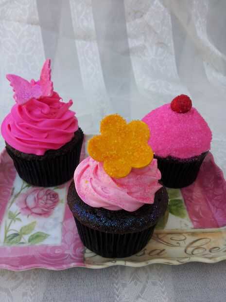 Estos son sabrosos cupcakes (con centros de caramelo fundido!) poner juntos para hacer un hawaii torta temática. Completar con una ola, una muchacha de hula, palmeras, un dispositivo de flotación de salvavidas, una toalla y flip flops, una frontera d
