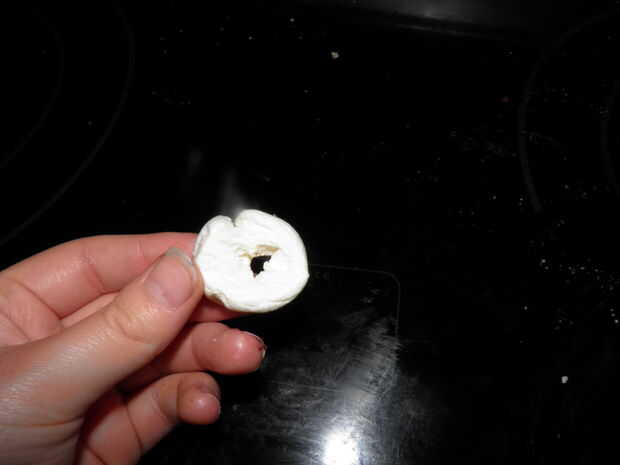 3. cortar piezas delgadas de pescado sueco y poner cuatro piezas alrededor del anillo.