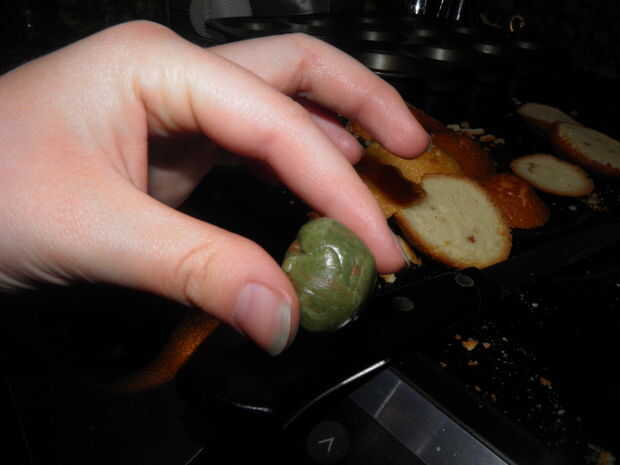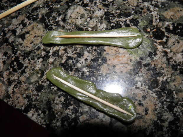 4. dividir cada bola por la mitad y estirar a la longitud de un palillo de dientes.