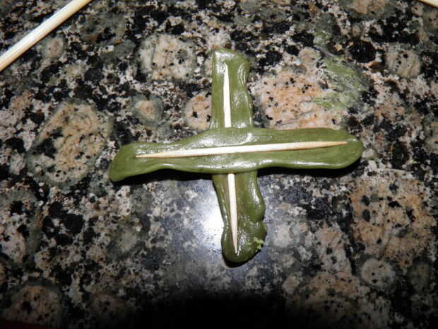 6. Junte dos de las piezas en la forma de una cruz