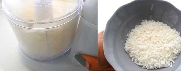 Este paso es opcional pero definitivamente notable. Añada sobre una taza de copos de coco a un procesador de alimentos y algunas legumbres. Solo basta con cortar las escamas del coco en pedacitos más pequeños.