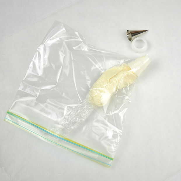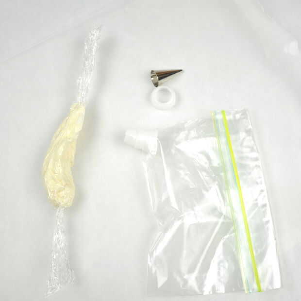 - Tome una bolsa zip lock y hacer un recorte en la esquina, meter en el interior decoración de acoplador. Cuadro 3