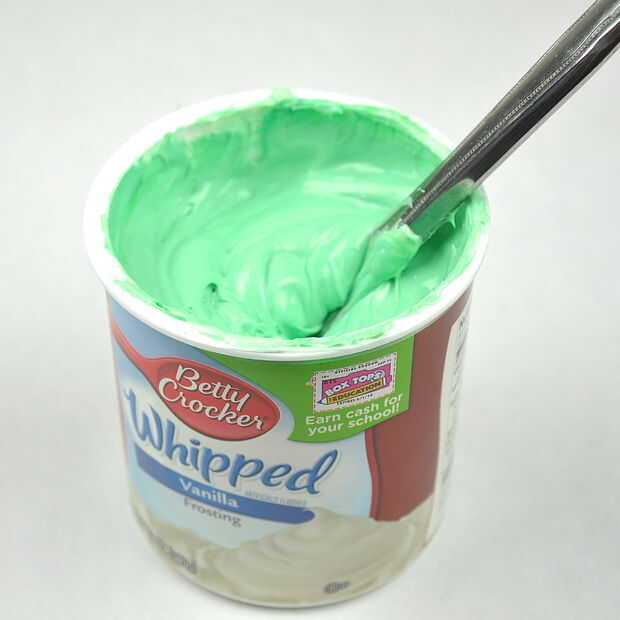 Mezclar algunos glaseado verde. Usé colorante verde y luego se mezcla en algunos azul para hacerla un poco más oscuro. Puede utilizar una punta diferente de wilton para hacer pasto, pero quería mantener esto simple. Esto es lo que hice.