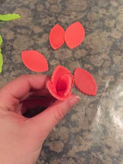 -Coloque la flor terminada en una taza, de pie. Deje las flores un par de horas para que el fondant endurezca.