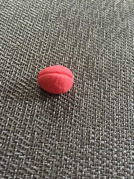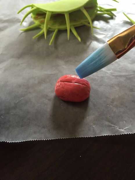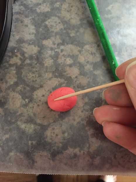 -Rodar una pelota pequeña de fondant rosa. Aplane la bola por un lado y alargar la bola en un óvalo para que se vea más "cerebro-como".
