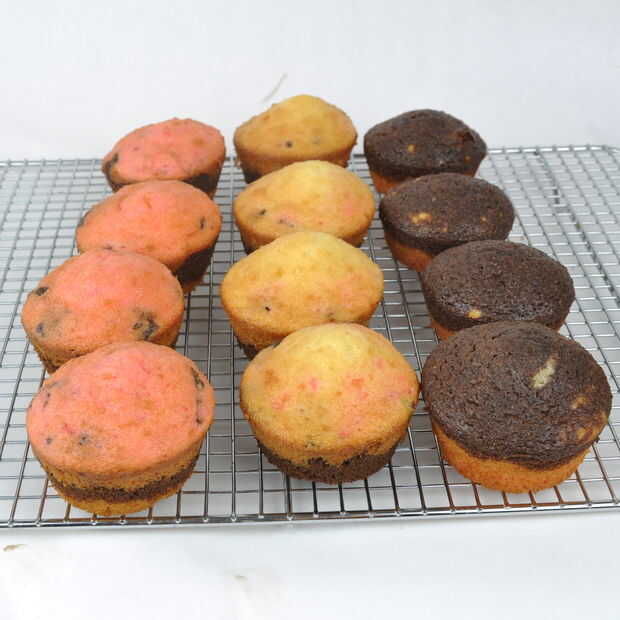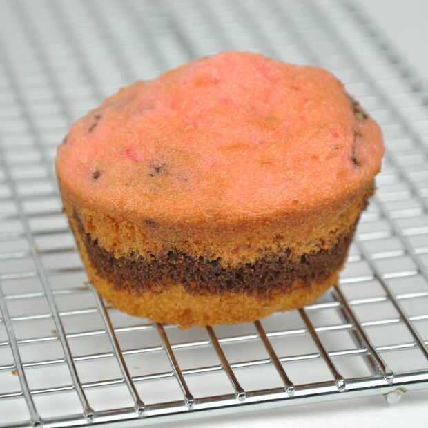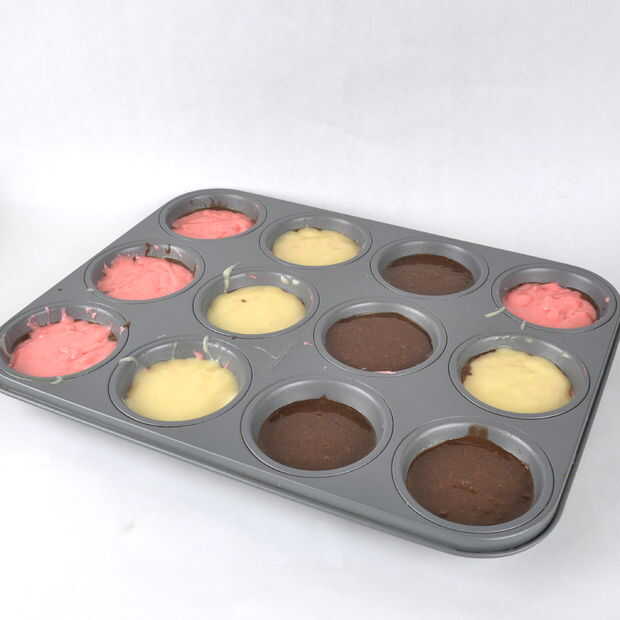 De estos test cupcakes, determinó que el mejor orden era fresa Vainilla - Chocolate - porque el color oscuro separa muy bien los más ligeros. (Por supuesto, podría hacerlo al revés: fresa - Chocolate - vainilla.)