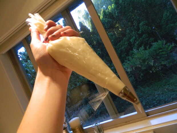Hacer un cupcake de prueba para ver si usted debe cortar la punta más grande. Siempre errar en el lado del demasiado pequeño porque es molesto y antieconómico a sacar dentro de una bolsa nueva y empezar de nuevo después de que usted ha cortado demasiado grande. Por supuesto, si no va de lujo, sólo hacerlo que quieras y manchar algunos cupcakes. O ser de fantasía y fingir que tiene un shmancy kit de decoración y trate algunas rosas.