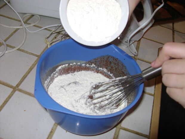 Para esta receta necesitarás:Mezcla de torta de chocolate Fudge (en una caja, porque es cómo ruedo)1 1/4 taza de leche3 huevos1/2 taza de aceite vegetalGlaseado de Fudge de chocolateBacon microondasLatas del molleteUn recipiente grandeMezclador eléct