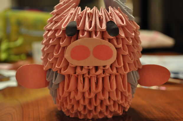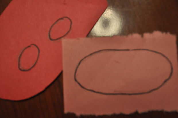 Al completar 6 hileras más, puede recortar los ojos y una nariz para su cupig y cinta de pegamento les en.