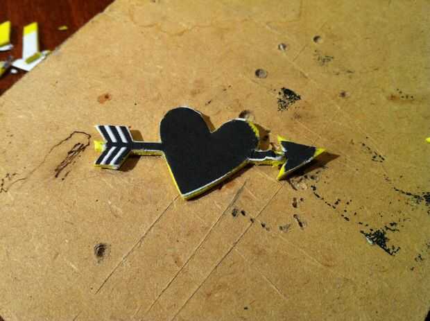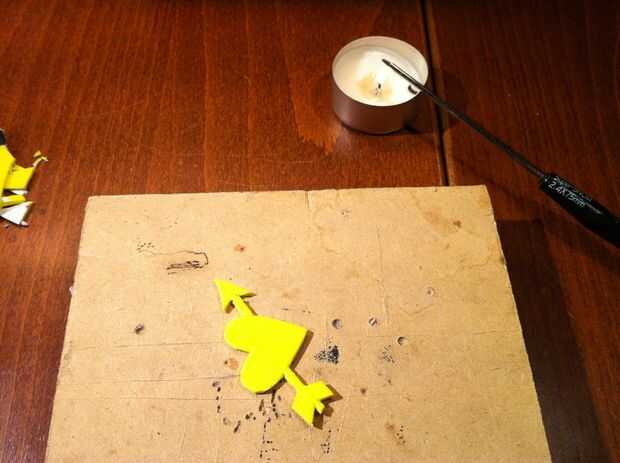 Si utilizas algo como mi pequeño láser de corte todas necesita son cargar alguna espuma de artesanía y presione impresión. Si no puede imprimir la forma en papel fino. El diluyente puede encontrar más fácil es conseguir un buen resultado. Ahora pegue a tu espuma de artesanía usando un palillo del pegamento, poniendo pegamento en el papel y presionar hacia abajo sobre la espuma del arte. Con un cuchillo y tijeras siga las líneas para hacer de su patrón. Si quieres hacer pequeños agujeros u otro patrón que es difícil hacerlo con un cuchillo puede calentar un clip para papel enderezado hacia fuera sobre una vela pequeña y presione suavemente hacia abajo en la espuma. Eso es lo que hice las aletas en la flecha de este diseño, sólo utilicé un destornillador pequeño como no encontré los clips de papel. Cuando se trabaja con calor así es más fácil trabajar desde la parte inferior de la espuma, este es el lado en que tendrá la tinta.