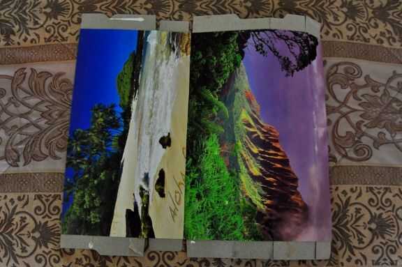 Una vez que tengas tu plantilla, tienes que cumplir tu papel decorativo sobre la cartulina. En primer lugar, con la caja como plantilla para trazar la forma de la caja en la parte trasera de su papel. Deje espacio extra en tu papel decorativo para envolver el papel alrededor de los bordes. Cortar el papel decorativo para el tamaño apropiado (aproximadamente 1/4" más grande que sus medidas de la caja). Ya que yo estaba usando un calendario de sobra para mis fotos, usé dos páginas (una en la parte frontal de la caja, uno de la espalda).
