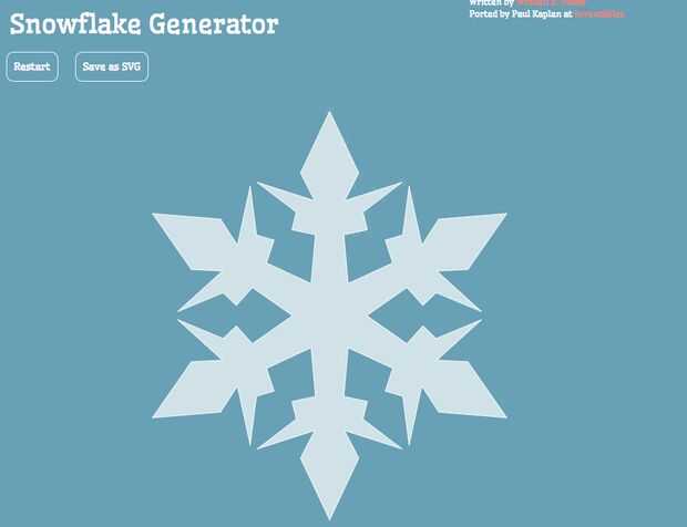 Por suerte para nosotros es un gran generador de copo de nieve a utilizar, hecho por Windell Oskay y adaptado por Paul Kaplan. Arrastre los círculos pequeños alrededor para hacer su propio copo de nieve. Cada vez arrastre un círculo, una nueva aparecerá a su lado para diseños más complicados.