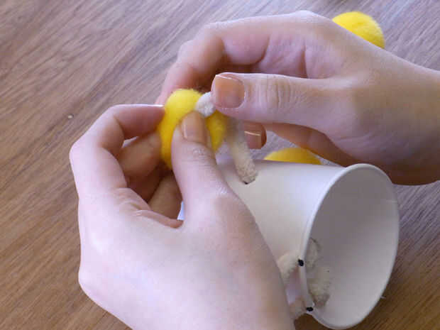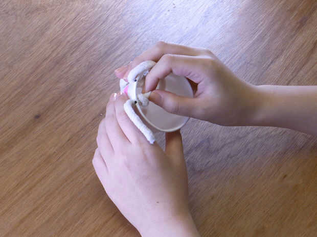 Pon-pons de pegamento en el extremo de las piezas de lana.