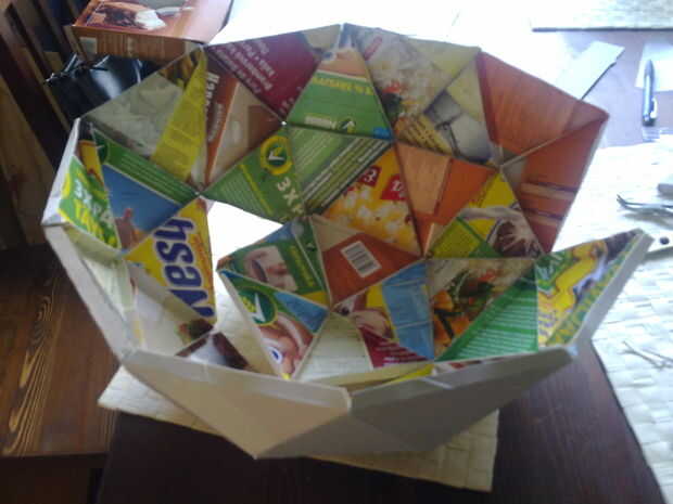 Cuando la parte de la cúpula está lista, es tiempo para pegar los cuadrados pasados juntos y luego a la cúpula.